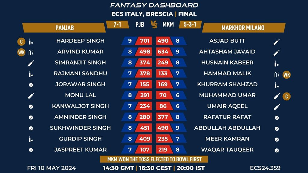 MATCH 57 (ECS24.358) PANJAB vs MARKHOR MILANO 14:15 GMT | 16:15 CEST | 19:45 IST