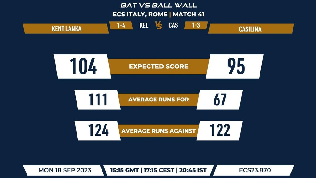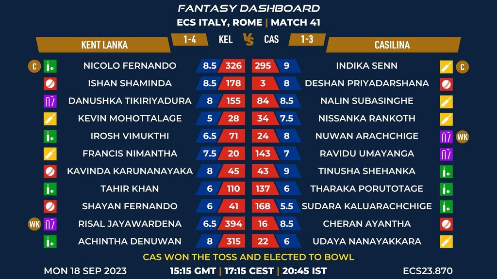 MATCH 41 (ECS23.870) KENT LANKA vs CASILINA 15:15 GMT | 17:15 CEST | 20:45 IST