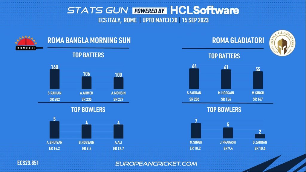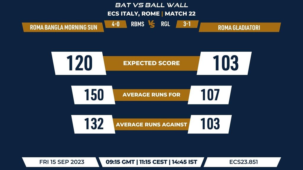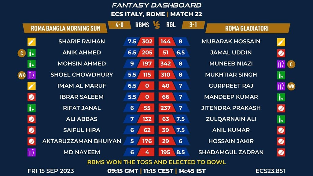 MATCH 22 (ECS23.851) ROMA BANGLA MORNING SUN vs ROMA GLADIATORI 09:15 GMT | 11:15 CEST | 14:45 IST