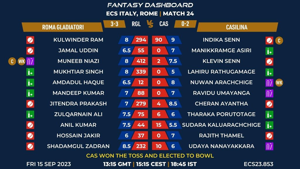 MATCH 24 (ECS23.853) ROMA GLADIATORI vs CASILINA 13:15 GMT | 15:15 CEST | 18:45 IST
