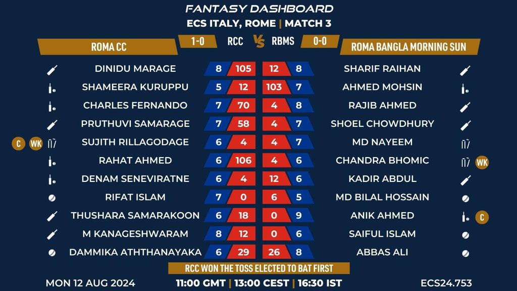 MATCH 3 (ECS24.753) ROMA CC vs ROMA BANGLA MORNING SUN 11:00 GMT | 13:00 CEST | 16:30 IST