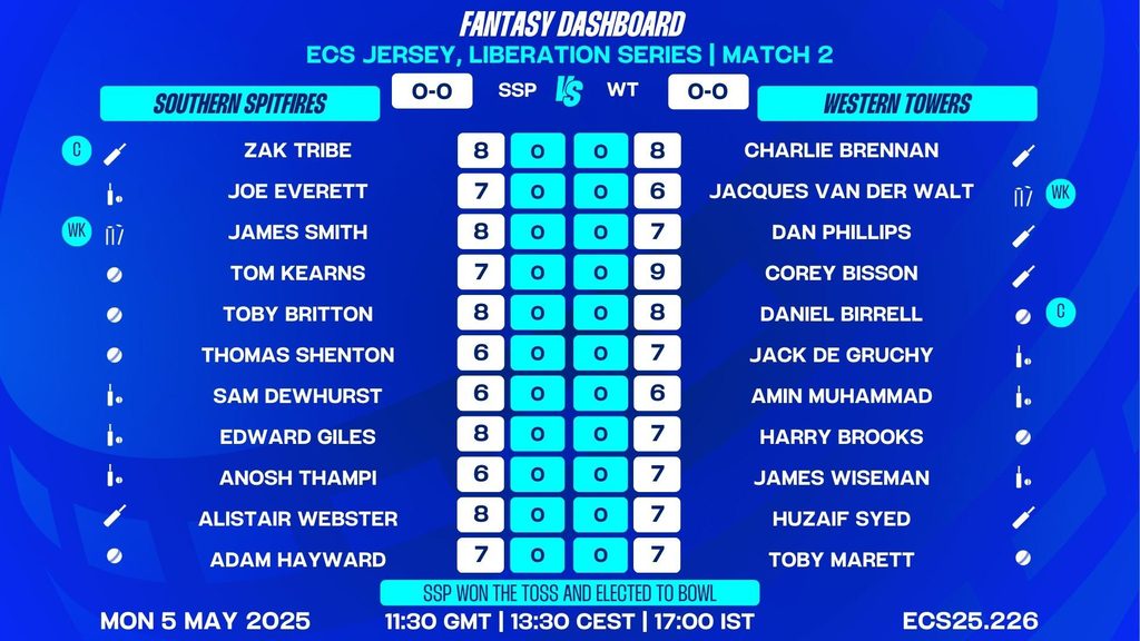 MATCH 2 (ECS25.226) Southern Spitfires vs Western Towers 11:30 GMT | 13:30 CEST | 17:00 IST