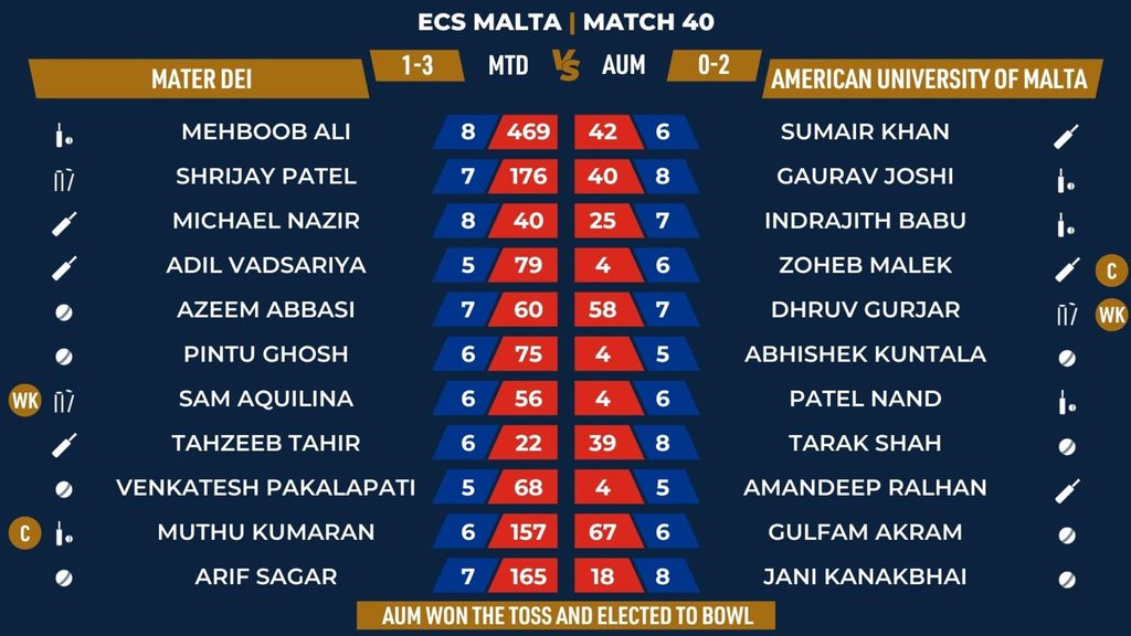 MATCH 40 (ECS24.969) MATER DEI vs AMERICAN UNIVERSITY OF MALTA 07:30 GMT | 09:30 CEST | 13:00 IST