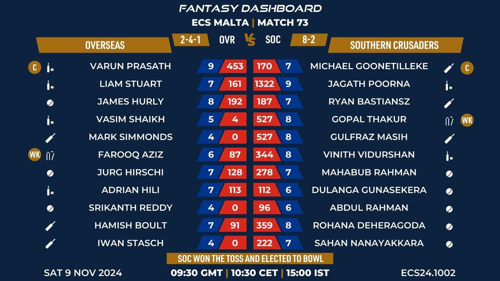 MATCH 73 (ECS24.1002) OVERSEAS vs SOUTHERN CRUSADERS 09:30 GMT | 10:30 CET | 15:00 IST