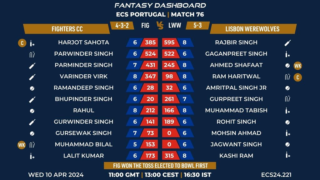 MATCH 76 (ECS24.221) FIGHTERS CC vs LISBON WEREWOLVES 11:00 GMT | 13:00 CEST | 16:30 IST