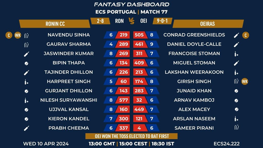 MATCH 77 (ECS24.222) RONIN CC vs OEIRAS 13:00 GMT | 15:00 CEST | 18:30 IST