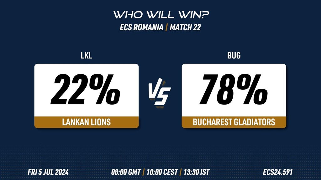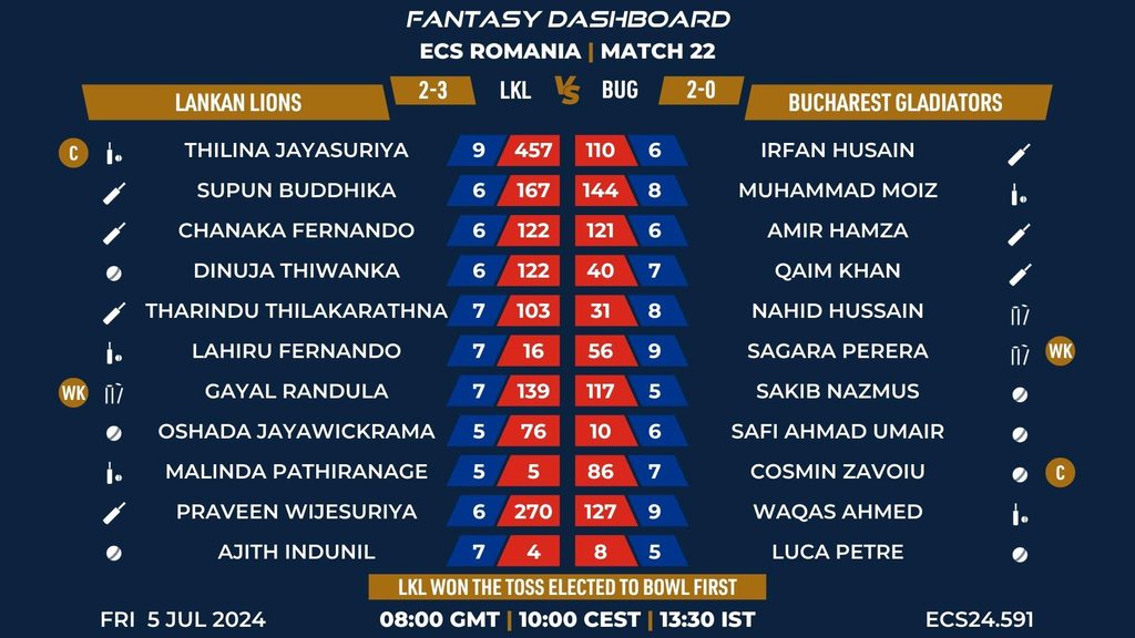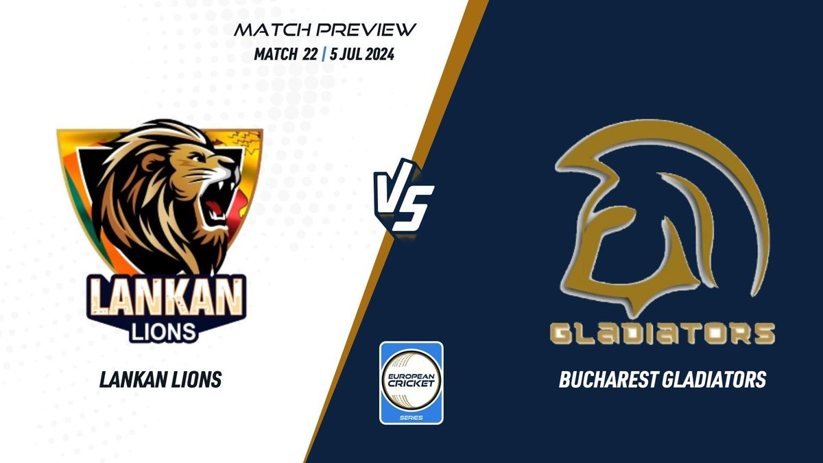 MATCH 22 (ECS24.591) LANKAN LIONS vs BUCHAREST GLADIATORS 08:00 GMT | 10:00 CEST | 13:30 IST