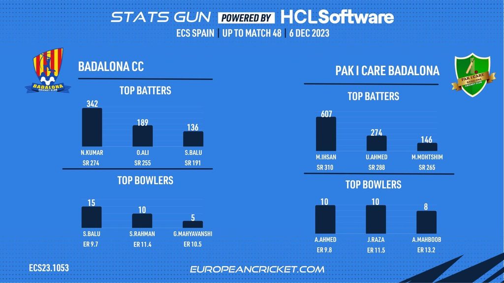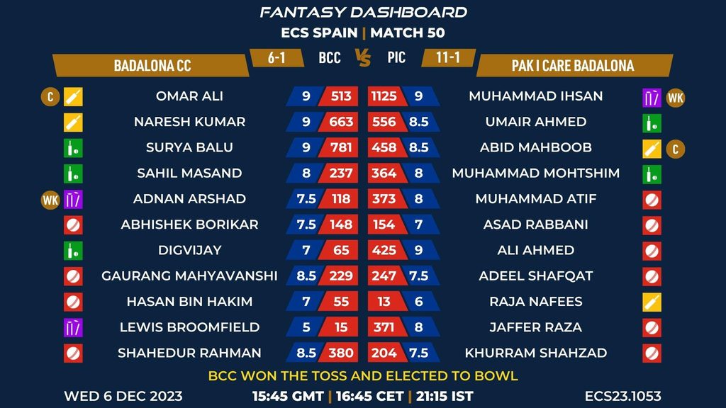 MATCH 50 (ECS23.1053) BADALONA CC vs PAK I CARE BADALONA 15:45 GMT | 16:45 CET | 21:15 IST
