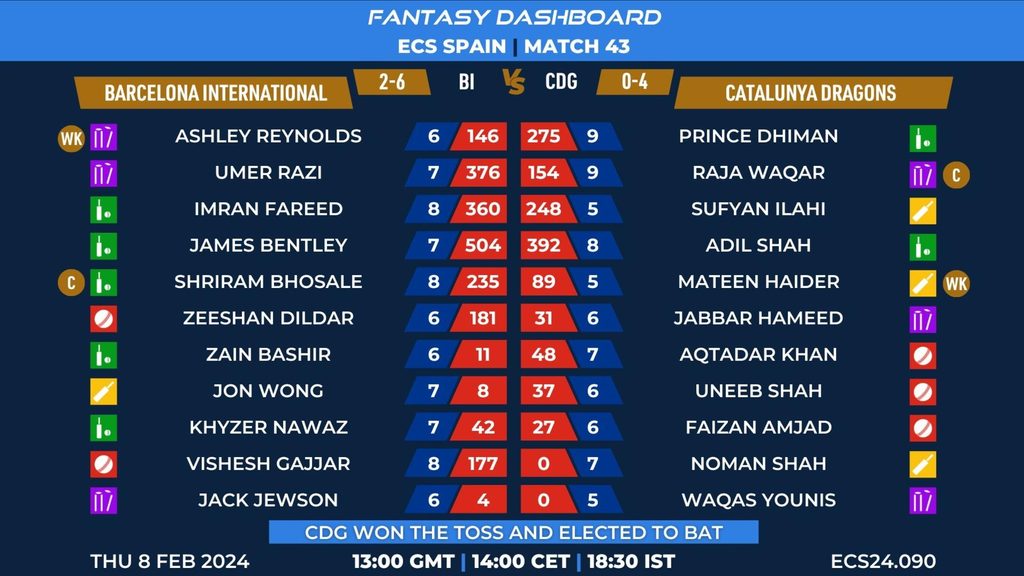 MATCH 43 (ECS24.090) BARCELONA INTERNATIONAL vs CATALUNYA DRAGONS 13:00 GMT | 14:00 CET | 18:30 IST