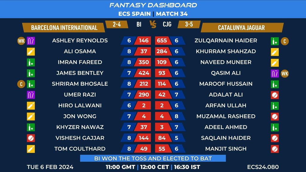 MATCH 34 (ECS24.081) BARCELONA INTERNATIONAL vs CATALUNYA JAGUAR 11:00 GMT | 12:00 CET | 16:30 IST