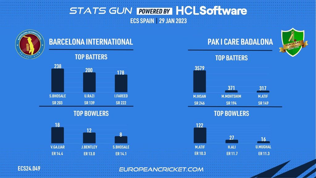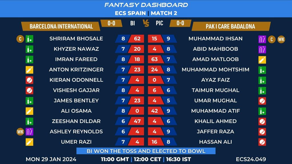 MATCH 2 (ECS24.049) BARCELONA INTERNATIONAL vs PAK I CARE BADALONA 11:00 GMT | 12:00 CET | 16:30 IST