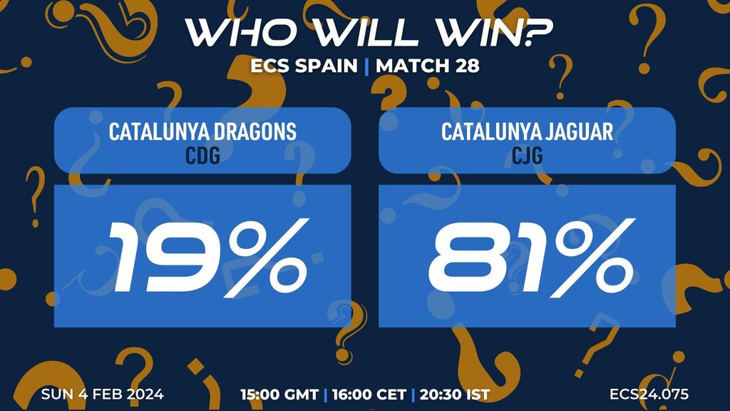 MATCH 28 (ECS24.075) CATALUNYA DRAGONS vs CATALUNYA JAGUAR 15:00 GMT | 16:00 CET | 20:30 IST