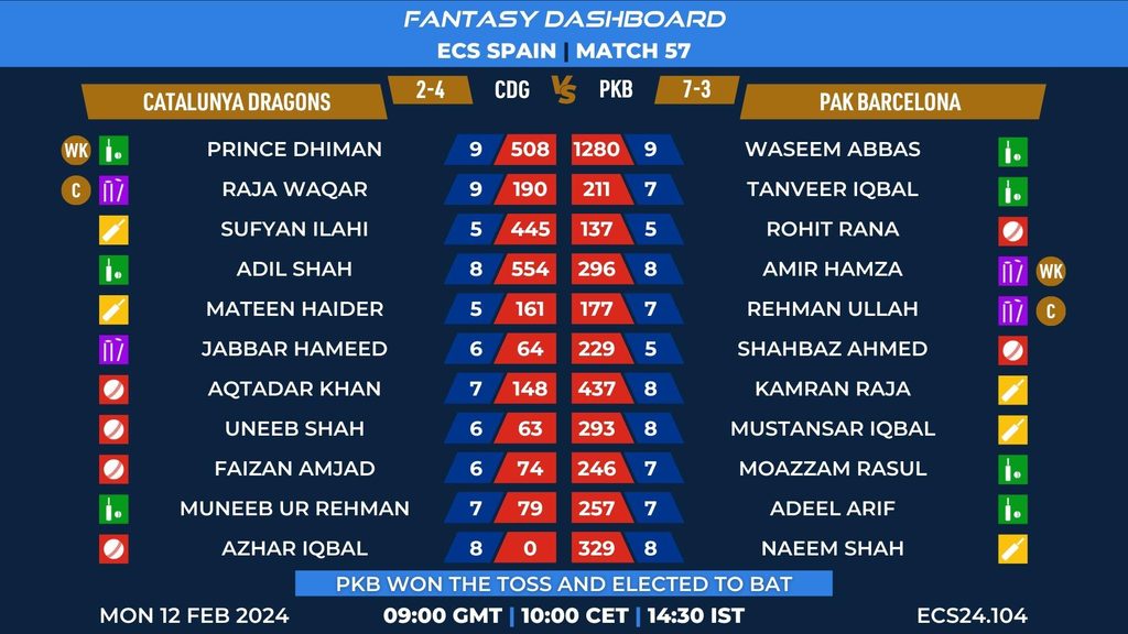 MATCH 57 (ECS24.104) CATALUNYA DRAGONS vs PAK BARCELONA 09:00 GMT | 10:00 CET | 14:30 IST