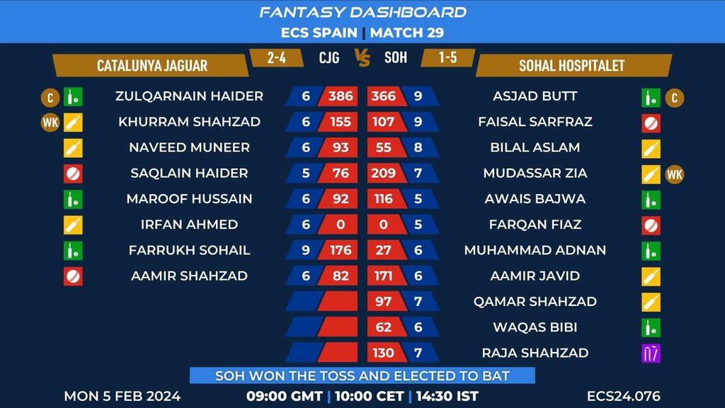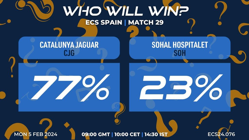 MATCH 29 (ECS24.076) CATALUNYA JAGUAR vs SOHAL HOSPITALET 09:00 GMT | 10:00 CET | 14:30 IST