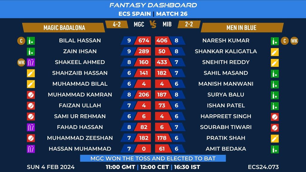 MATCH 26 (ECS24.073) MAGIC BADALONA vs MEN IN BLUE 11:00 GMT | 12:00 CET | 16:30 IST