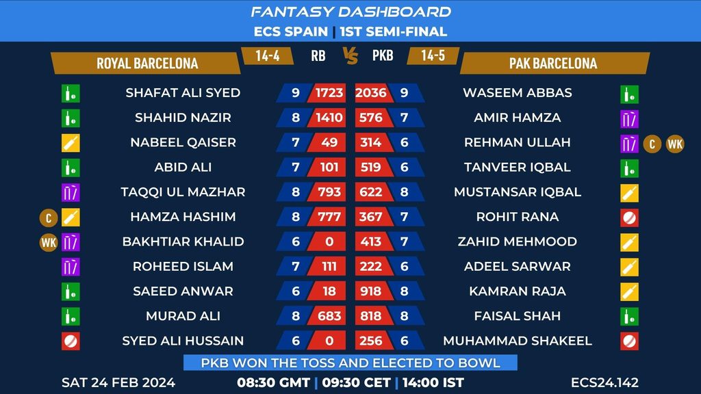MATCH 95 (ECS24.142) ROYAL BARCELONA vs PAK BARCELONA 08:30 GMT | 09:30 CET | 14:00 IST
