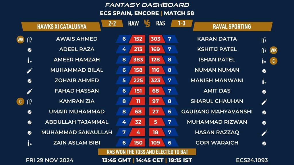MATCH 58 (ECS24.1093) HAWKS XI CATALUNYA vs RAVAL SPORTING 13:45 GMT | 14:45 CET | 19:15 IST