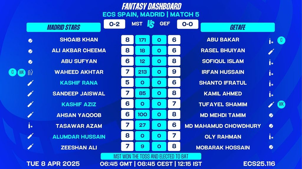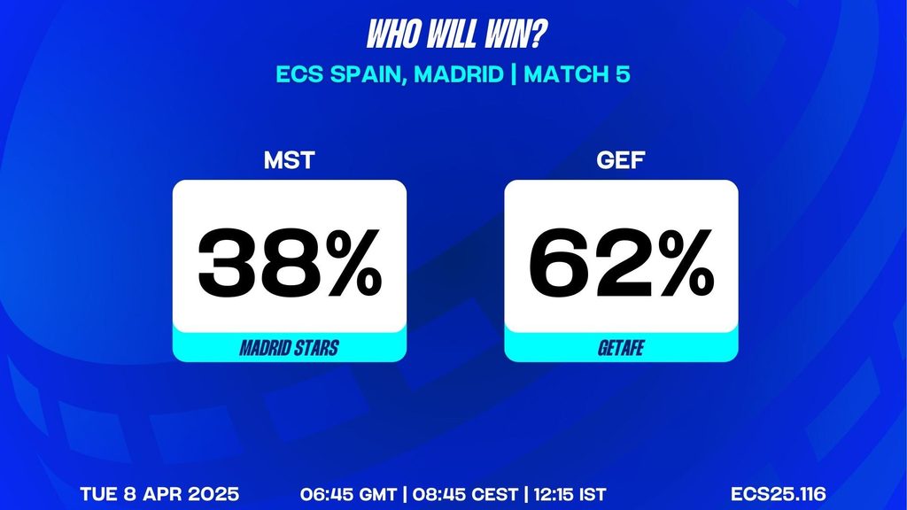 MATCH 5 (ECS25.116) Madrid Stars vs Getafe 07:45 GMT | 08:45 CEST | 12:15 IST