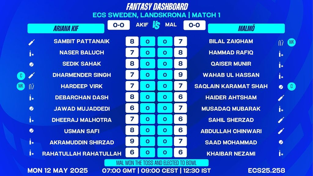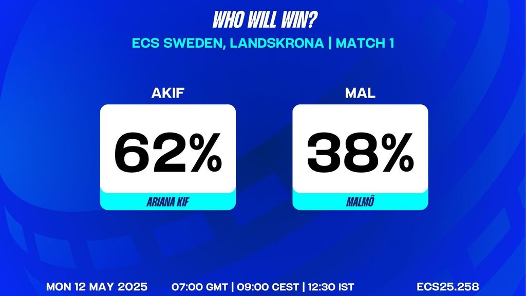 MATCH 1 (ECS25.258) Ariana KIF vs Malmo 07:00 GMT | 09:00 CEST | 12:30 IST