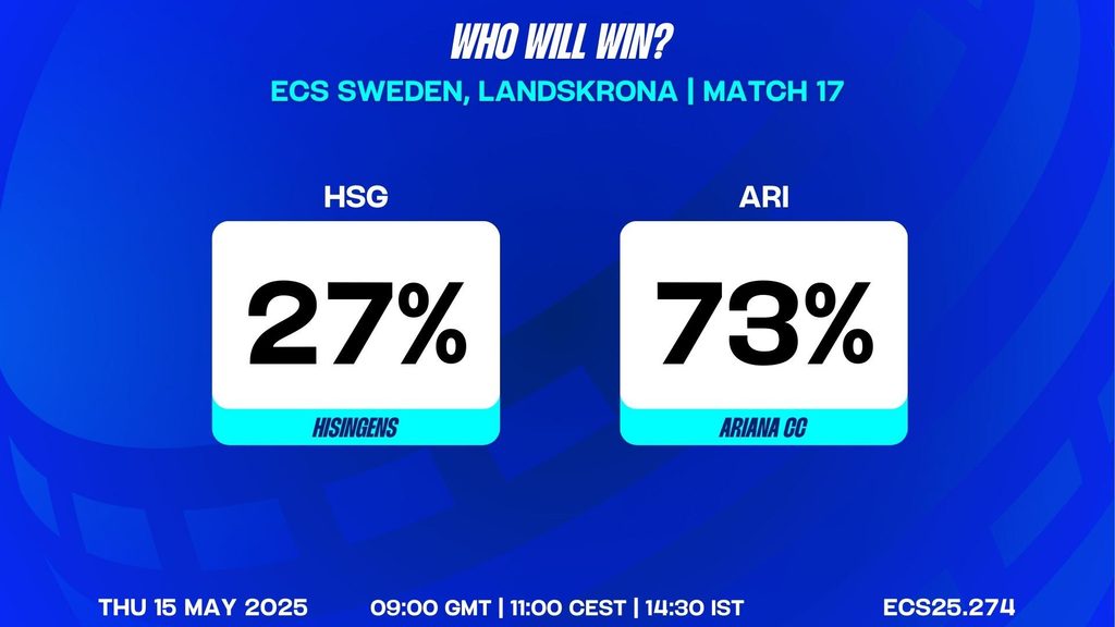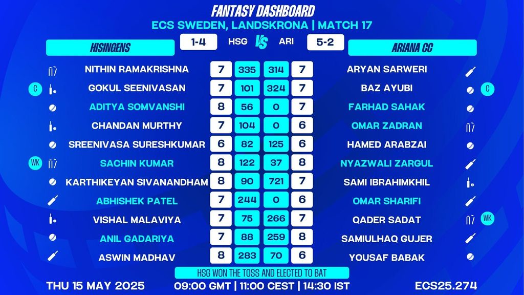 MATCH 17 (ECS25.273) Hisingens vs Ariana CC 09:00 GMT | 11:00 CEST | 14:30 IST