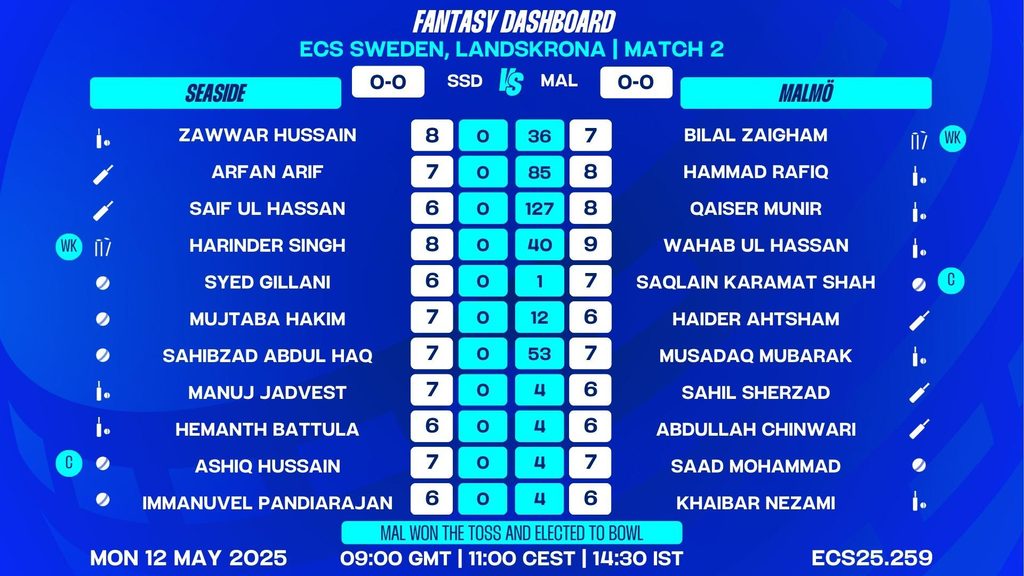 MATCH 2 (ECS25.259) Seaside vs Malmo 09:00 GMT | 11:00 CEST | 14:30 IST