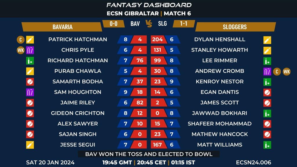 MATCH 6 (ECSN24.006) BAVARIA vs SLOGGERS 19:45 GMT | 20:45 CET | 01:15 IST