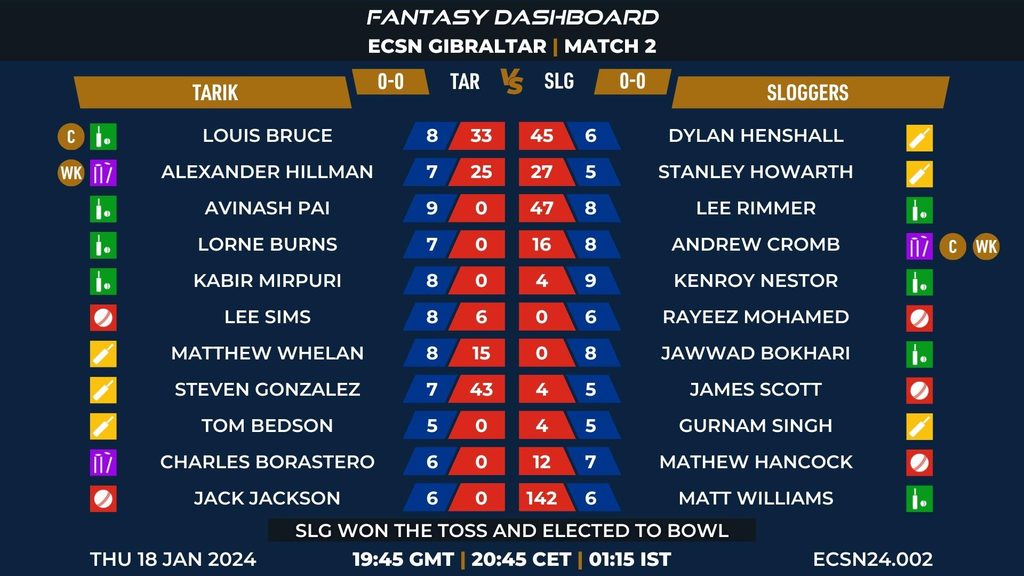 MATCH 2 (ECSN24.002) TARIK vs SLOGGERS 19:45 GMT | 20:45 CET | 01:15 IST