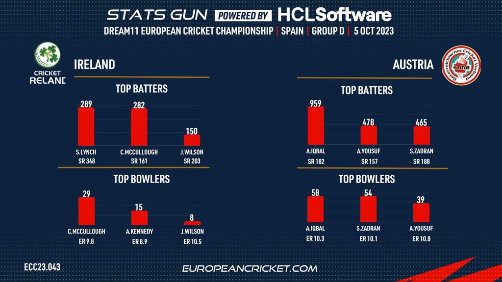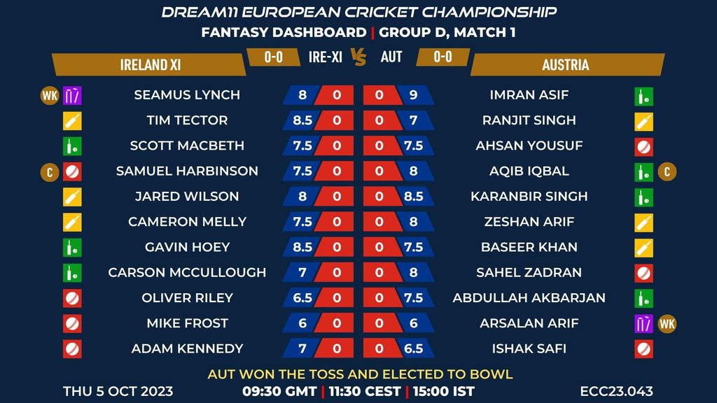 MATCH 1 (ECC23.043) IRELAND XI vs AUSTRIA 09:30 GMT | 11:30 CEST | 15:00 IST