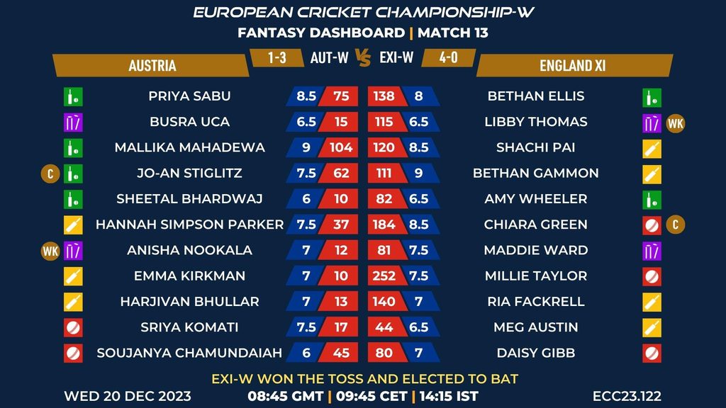 MATCH 13 (ECC23.122) AUSTRIA vs ENGLAND XI 08:45 GMT | 09:45 CET | 14:15 IST