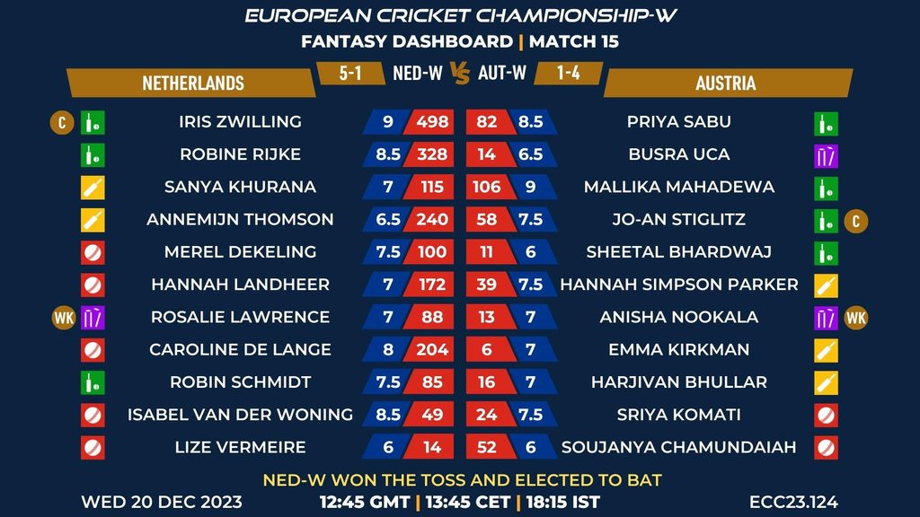 MATCH 15 (ECC23.124) NETHERLANDS vs AUSTRIA 12:45 GMT | 13:45 CET | 18:15 IST