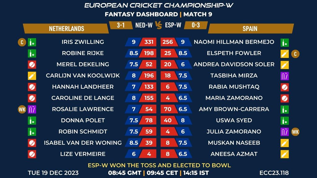 MATCH 9 (ECC23.118) NETHERLANDS vs SPAIN 08:45 GMT | 09:45 CET | 14:15 IST