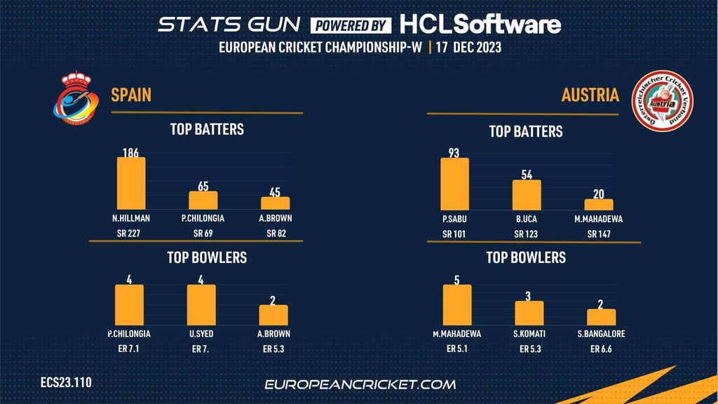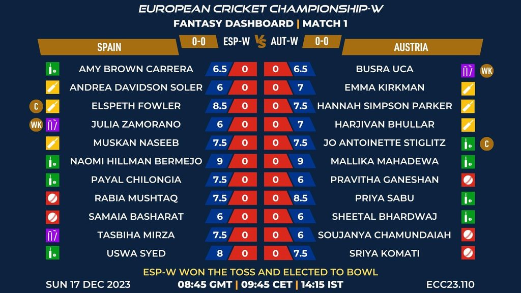 MATCH 1 (ECC23.110) SPAIN vs AUSTRIA 08:45 GMT | 09:45 CET | 14:15 IST