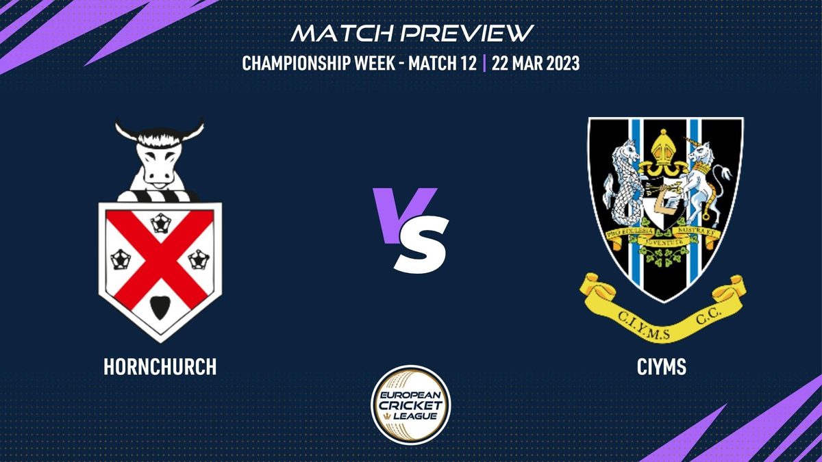 CHAMPIONSHIP WEEK, MATCH 12 (ECL23.096) HORNCHURCH (HOR) v CIYMS (CIY) 1030 GMT | 1130 CEST | 1600 IST