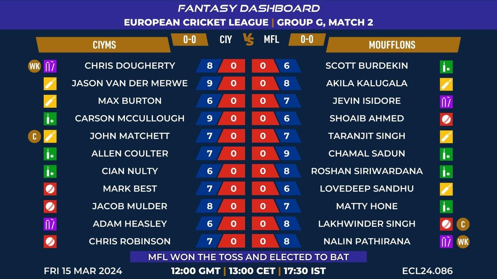 MATCH 86 (ECL24.086) CIYMS vs MOUFFLONS 12:00 GMT | 13:00 CET | 17:30 IST