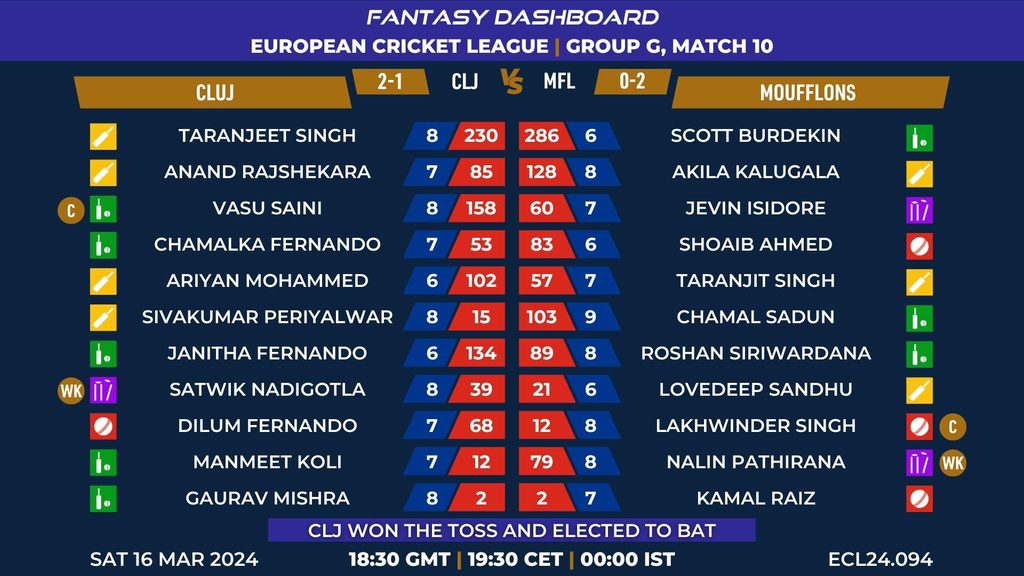 MATCH 94 (ECL24.094) CLUJ vs MOUFFLONS 18:30 GMT | 19:30 CET | 00:00 IST