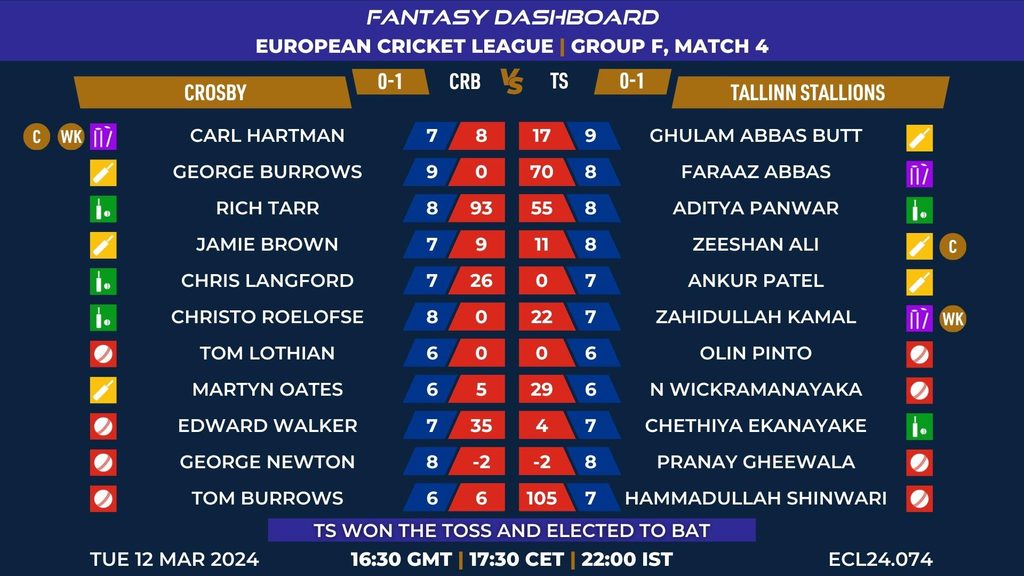 MATCH 74 (ECL24.074) CROSBY vs TALLINN STALLIONS 16:30 GMT | 17:30 CET | 22:00 IST