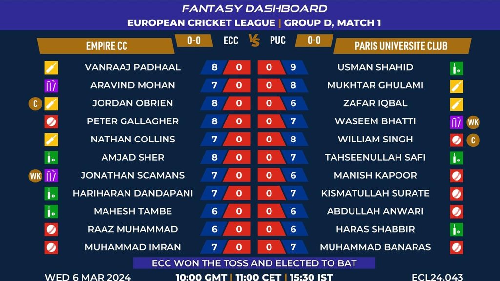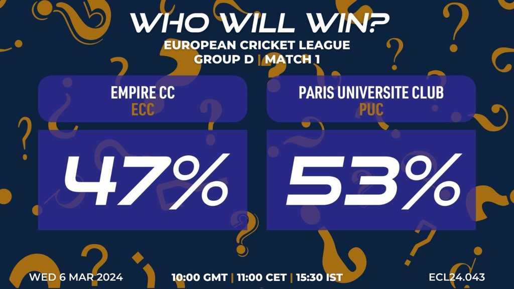 MATCH 43 (ECL24.043) EMPIRE CC vs PARIS UNIVERSITE CLUB 10:00 GMT | 11:00 CET | 15:30 IST