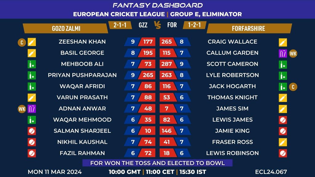 MATCH 67 (ECL24.067) GOZO ZALMI vs FORFARSHIRE 10:00 GMT | 11:00 CET | 15:30 IST