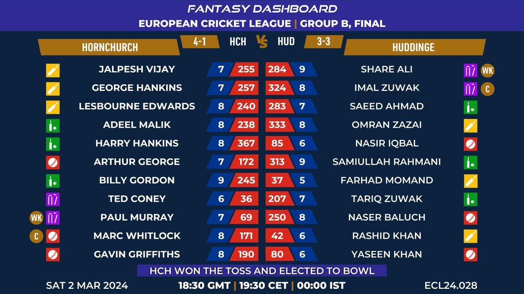 MATCH 28 (ECL24.028) HORNCHURCH vs HUDDINGE 18:30 GMT | 19:30 CET | 00:00 IST