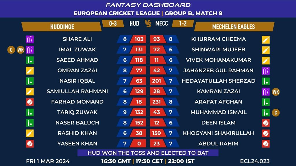 MATCH 23 (ECL24.023) HUDDINGE vs MECHELEN EAGLES 16:30 GMT | 17:30 CET | 22:00 IST