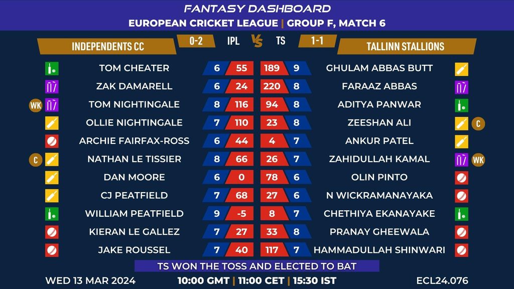 MATCH 76 (ECL24.076) INDEPENDENTS CC vs TALLINN STALLIONS 10:00 GMT | 11:00 CET | 15:30 IST