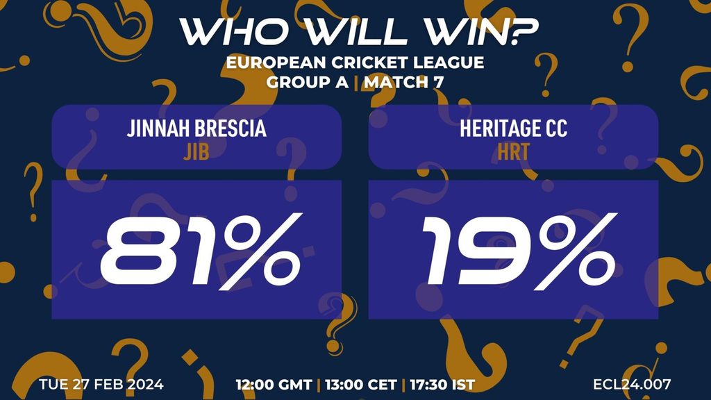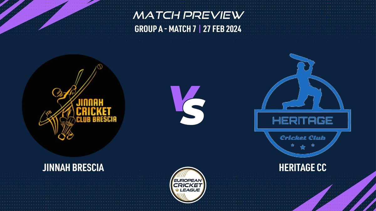 MATCH 7 (ECL24.007) JINNAH BRESCIA vs HERITAGE CC 12:00 GMT | 13:00 CET | 17:30 IST