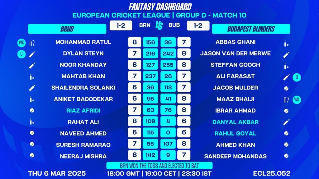 MATCH 10 (ECL25.052) BRNO vs BUDAPEST BLINDERS 17:00 GMT | 19:00 CET | 23:30 IST