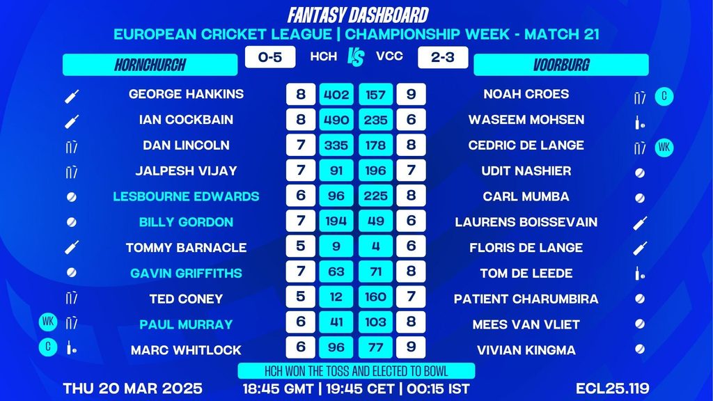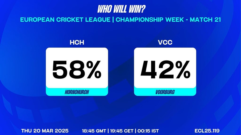 MATCH 21 (ECL25.119) HORNCHURCH vs VOORBURG 18:45 GMT | 19:45 CET | 00:15 IST