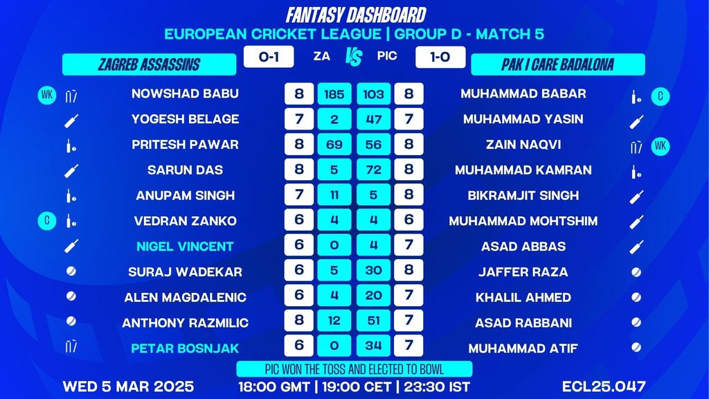 MATCH 5 (ECL25.047) ZAGREB ASSASSINS vs PAK I CARE BADALONA 18:00 GMT | 19:00 CET | 23:30 IST