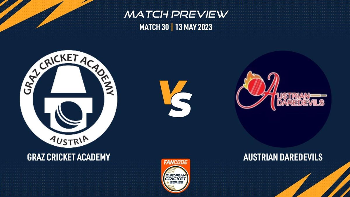 MATCH 30 (ECS23.326) GRAZ CRICKET ACADEMY (GCA) vs AUSTRIAN DAREDEVILS (ADD) 1530 GMT | 1730 CEST | 2100 IST