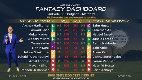 FANTASY Dashboard Match 19 - FanCode ECS Bulgaria Share Share Share on Facebook Share on Twitter Share on WhatsApp Copy Link Close