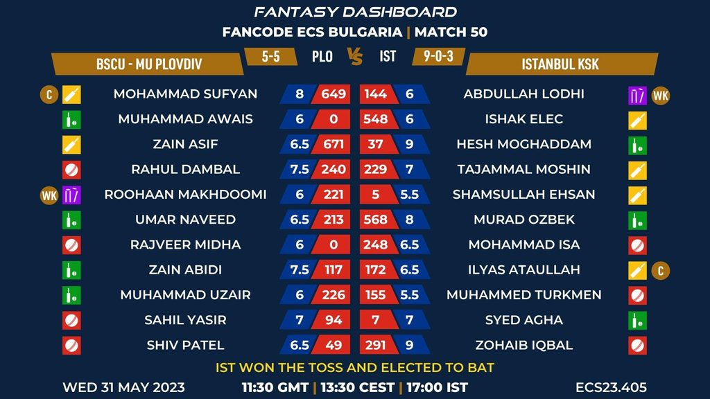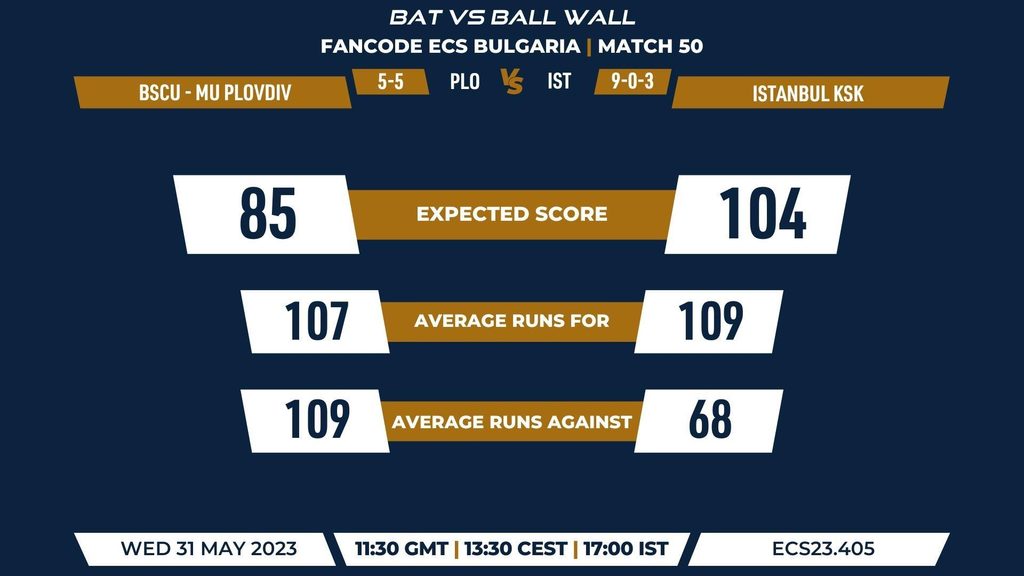 MATCH 50 (ECS23.405) BSCU - MU PLOVDIV (PLO) vs ISTANBUL KSK (IST) 1130 GMT | 1330 CEST | 1700 IST