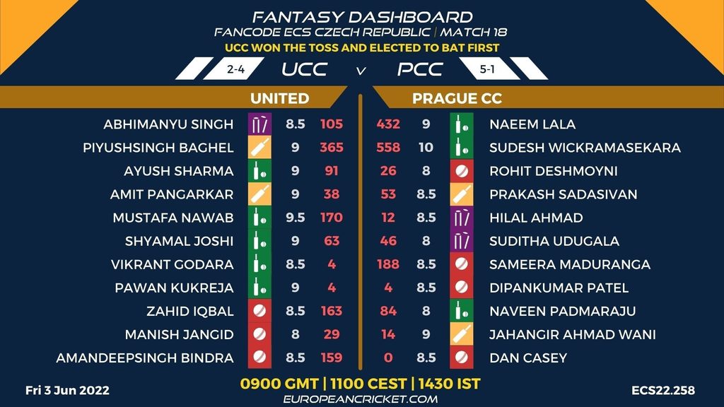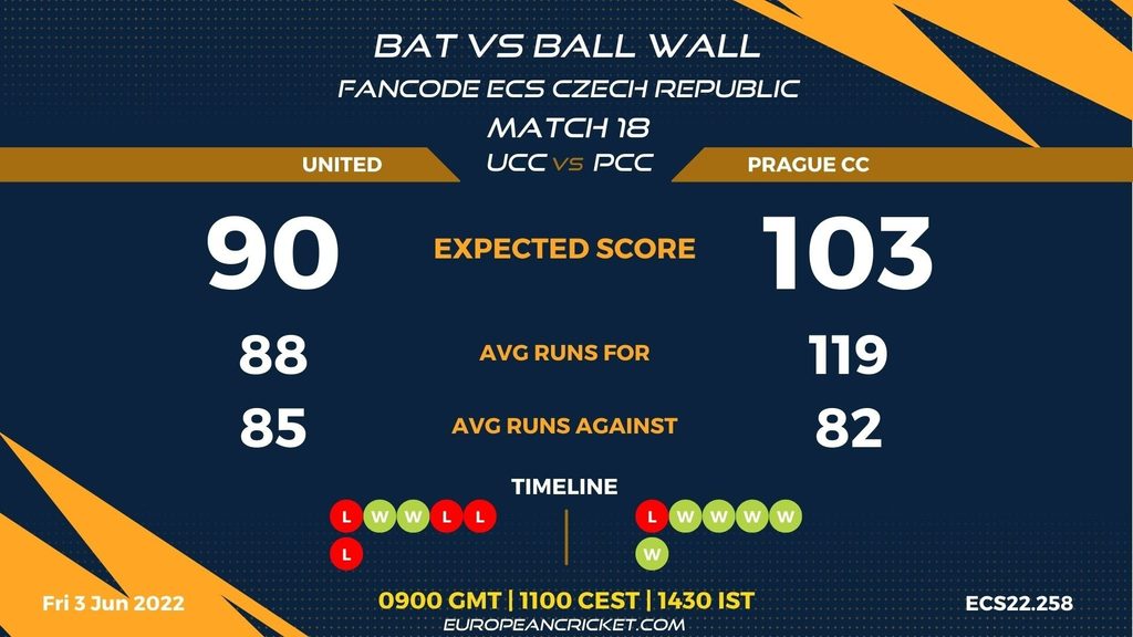 MATCH 18 (ECS22.258) UNITED (UCC) v PRAGUE CC (PCC) 0900 GMT | 1100 CEST | 1430 IST