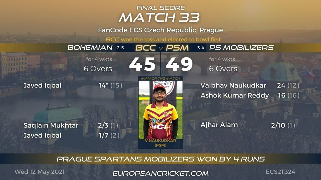 In a six-over thrash, Prague Spartans Mobilizers snatched victory from the jaws of defeat against ECN Czech Super Series champions Bohemian to climb up to third spot.